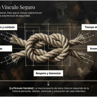 Son destacables algunos básicos -algunas condiciones- que deben cumplirse en un vínculo para que se sienta seguro (p.e. atención, tiempo de calidad, diversión, descanso, alimento, bienestar, cuidado, respeto, conexión, diálogo, ausencia de maltrato y abusos, los reflejos más instintivos, etc.). No obstante, es aún más destacable cómo varía lo que cada uno necesita para sentir esa seguridad, lo cual depende de la educación, nuestros valores, nuestra historia personal, nuestros logros y pérdidas, nuestras carencias y dones, nuestro aprendizaje…