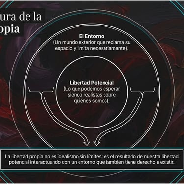 Y tampoco podemos fliparnos con eso, pues hablábamos de que la realidad que nos rodea limita nuestro ser. Así que la libertad propia depende de nuestra libertad potencial (definida/limitada por nuestro ser) y un entorno necesariamente limitante.