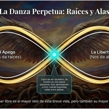 El apego y la libertad, lejos de ser opuestos, se funden en una danza perpetua: la libertad nos da alas, el apego nos da raíces. Y quizá, al final, solo aprendemos a vivir cuando logramos bailar entre ambas.
