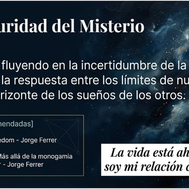 La verdad es que no sé qué es el amor pero seguramente la respuesta se encuentre entre las estrellas ausentes y presentes, entre los límites de mi ser y el horizonte de los sueños del ser de los otros. Porque amar y ser libre es, quizás, el mayor reto de esta breve vida, pero también su mayor milagro.